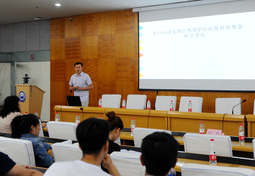 王维禹博士作题为《长白山国家级自然保护区松鼠种群数量时空变化》的报告。