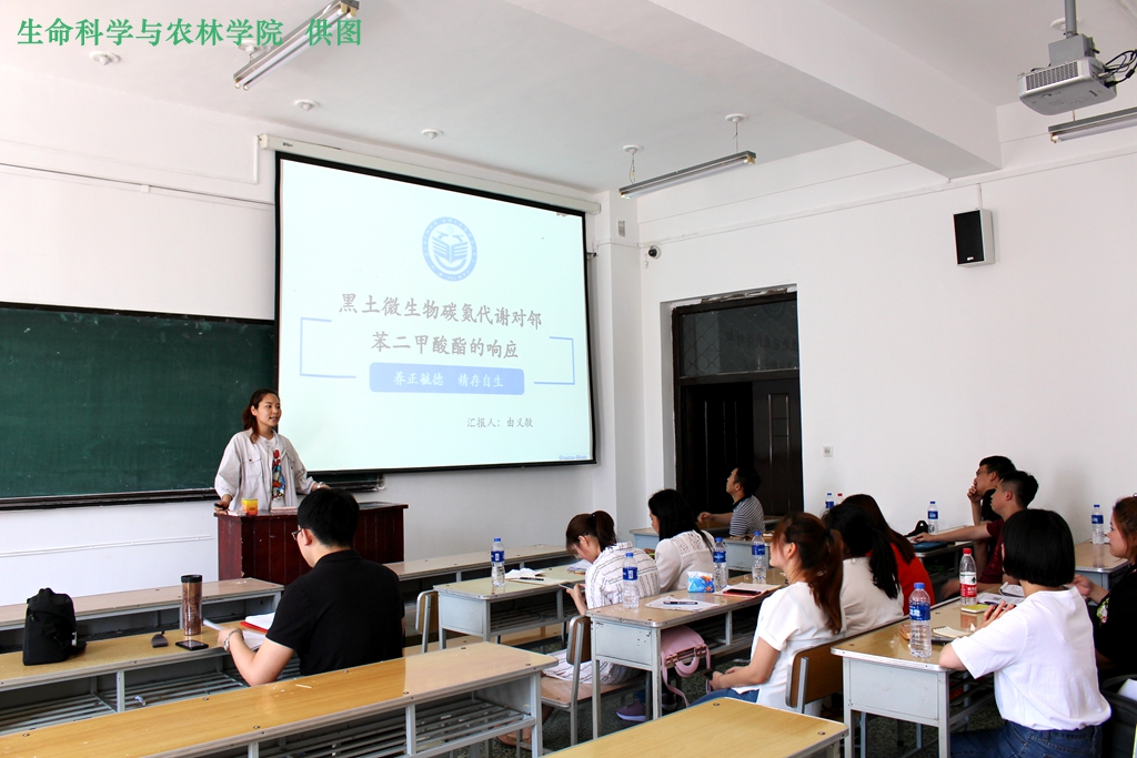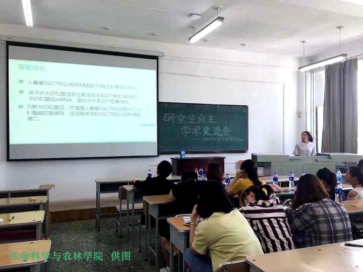 下午,大会组织了植物、动物、微生物,遗传学,生物化学与分子生物学,教育教学等4个分会场的学术报告,分别有来自研二和研三的同学参加了学术交流,共做学术报告39个。同学们畅所欲言,各抒己见,相互学习,取长补短,既加强了学术交流,也增进了彼此之间的友谊。