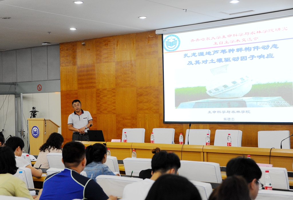 焦德志博士作题为《扎龙湿地芦苇种群构件动态及其对土壤驱动因子的响应》的报告。