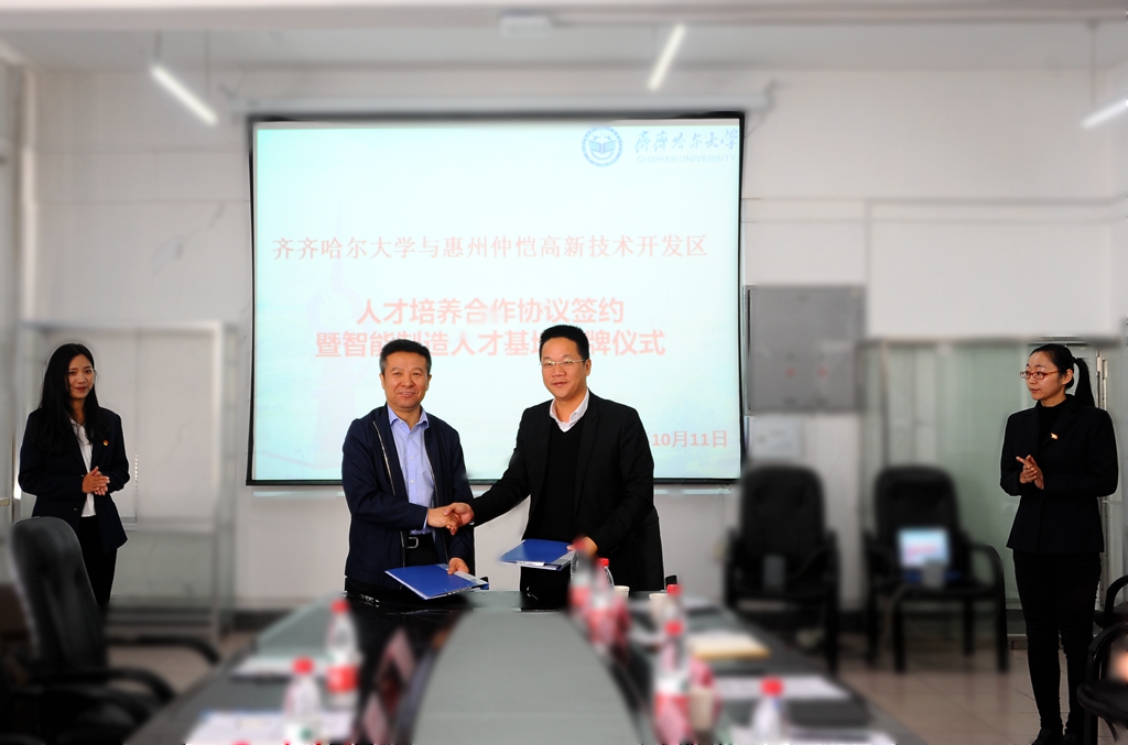 李英杰和许玉书分别代表tyc1286太阳集团和惠州仲恺高新技术产业开发区签署了人才培养合作协议,并共同为惠州仲恺(国家级)高新技术产业开发区智能制造人才基地揭牌。