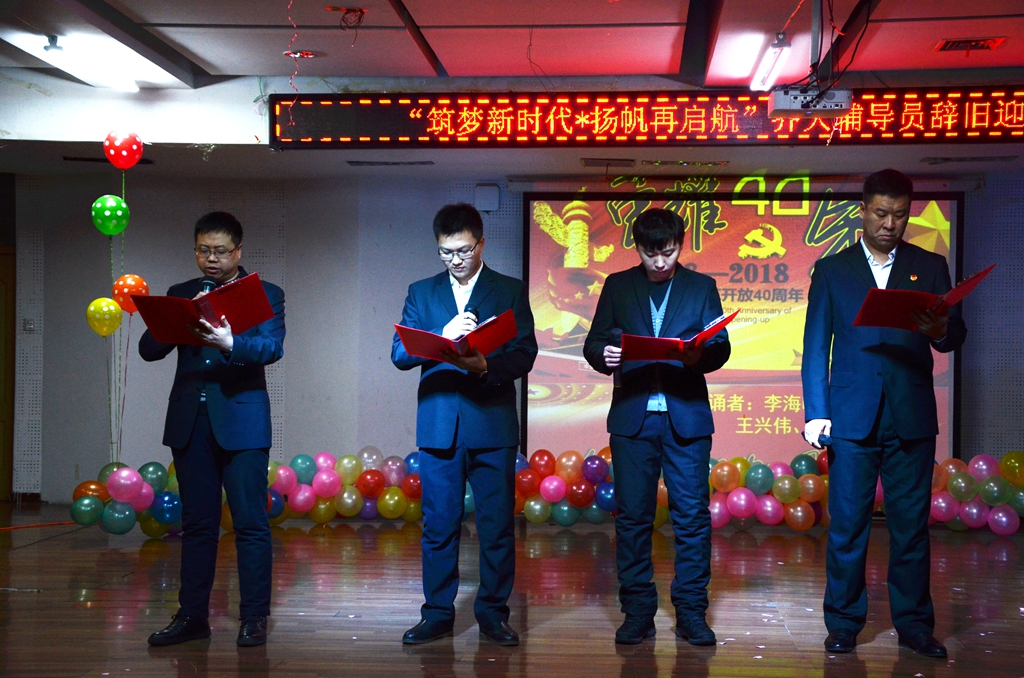 2018年12月28日下午,tyc1286太阳集团“筑梦新时代,扬帆再启航”辅导员辞旧迎新联欢会在东区音乐与舞蹈学院四楼排练厅举行。联欢会由学生工作部(学生处)主办,辅导员协会承办。副校长王刚出席联欢会,学生工作部(学生处)、校团委、招生就业处等职能部门工作人员,各学院主管学生工作领导以及全体辅导员参加了联欢会。联欢会由机电工程学院辅导员庞晓远、经济与管理学院辅导员王凤超、学生处少数民族学生专职辅导员哈尼巴提·恩提巴克、公寓辅导员安平主持。