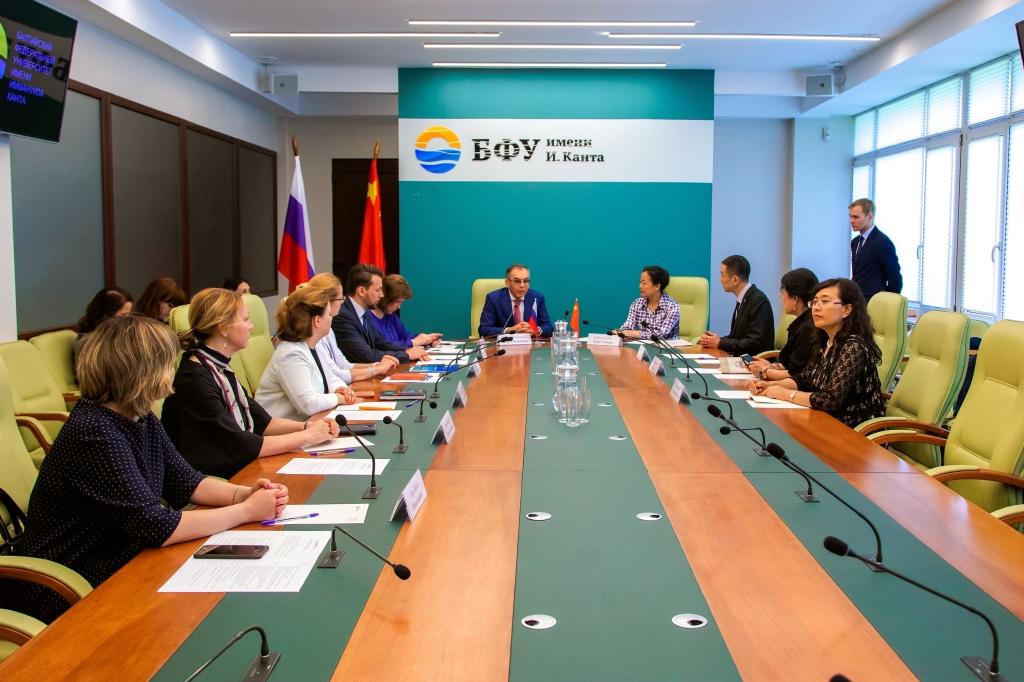 代表团首先到访俄罗斯波罗的海联邦大学,受到了校长安德烈·克列梅舍夫、第一副校长伊莉娜·古斯卡和副校长叶飞木·费德俩的热情接待,并举行了会谈。该校副校长国际事务助理、外事处处长娜塔莉亚·米梁夫斯卡娅,教育学院院长安娜·布达莉娜,人文学院院长达吉雅娜·迟维恭,生命学院院长奥立卡·芭碧琪参加了会谈。