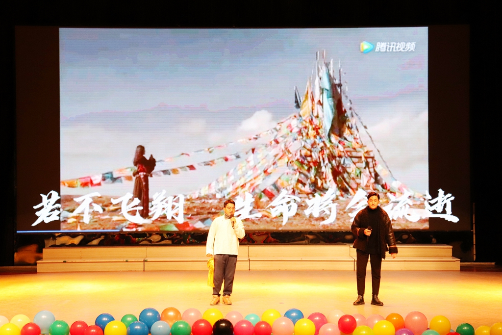 而由嘎玛罗珠、旦增坚赞同学演唱的歌曲《FLY-飞》,用藏语为大家演绎了一个努力追寻梦想的画面,一起走进西藏,看着雪山,品着酥油茶,感受那里的土地和天空,感受着无比瑰丽的自然之美。只要拥有梦想,前路就会铺满光芒。若想获得生命的灿烂,从此刻飞翔。