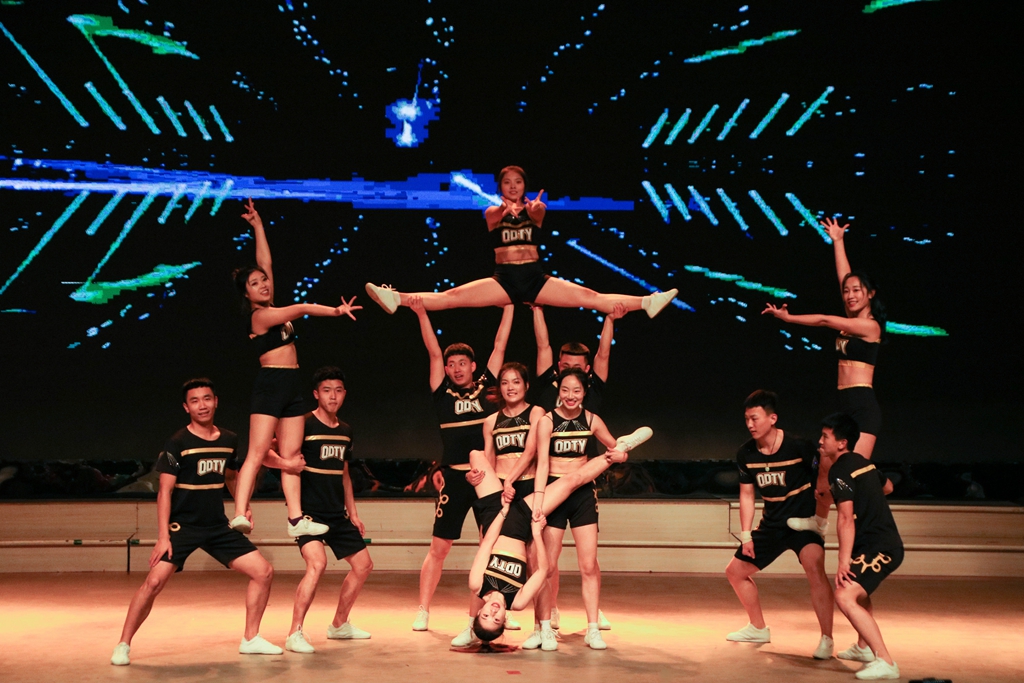 健美操《舞动青春》仿佛让大家回到了中学时代,旋律欢快的舞蹈向观众讲述了青春的活力,重新感受到了那段充满朝气、快乐而又激情四射的时光。在健美操开始前由依米奴·伊萨克带来的新疆维吾尔族舞蹈《掀起你的盖头来》带给同学们大大的惊喜。