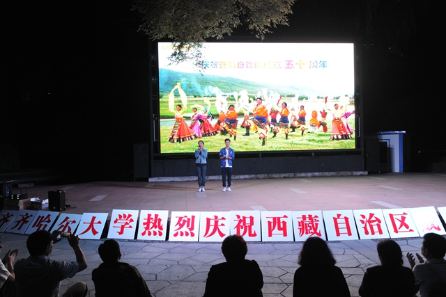 2015年9月西藏自治区迎来成立50周年。9月2日18:30,我校藏族学生与其他各族师生一起在三致广场载歌载舞,纵情歌唱,热烈庆祝西藏自治区成立50周年。