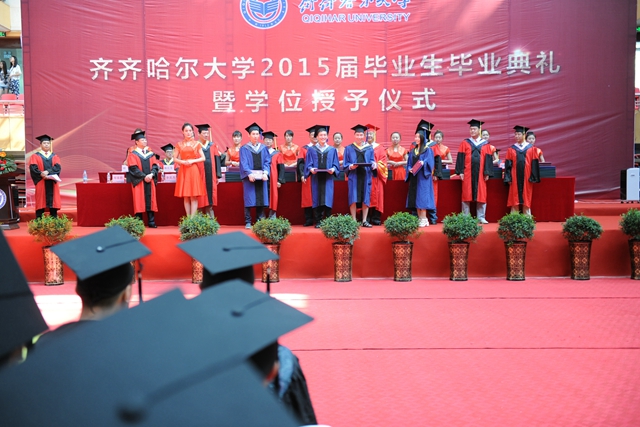 马立群校长为2015届毕业生送上期盼和嘱托,希望同学们继续秉承和发扬“养正毓德精存自生”的校训精神,做一个重德行、勇担当、有创造的齐大人,把优良品德和坚强意志的追求贯穿人生始终,承担起责任,履行好义务。“顺境逆境看胸襟,大事难事看担当”,担当是一种崇高精神境界,一种催人奋进的力量,一种不辱使命的气概,也是齐大人的高贵品质,优秀校友胡萍就是大家的榜样。在我校63年的办学实践中,一届又一届优秀的毕业生走出了校园,他们心怀祖国、志在四方,在各自的领域中通过自己的奋斗谱写出精彩的人生华章。我相信你们一定大有作为!希望你们胸怀远大理想,志存高远,俯身实干,紧跟时代潮流,把握创新发展趋势,抓住宝贵机遇,勇做大众创业、万众创新的践行者,在实现个人梦想和人生价值的过程中,开创出属于你们的美好未来,为实现中华民族伟大复兴做出应有的贡献。