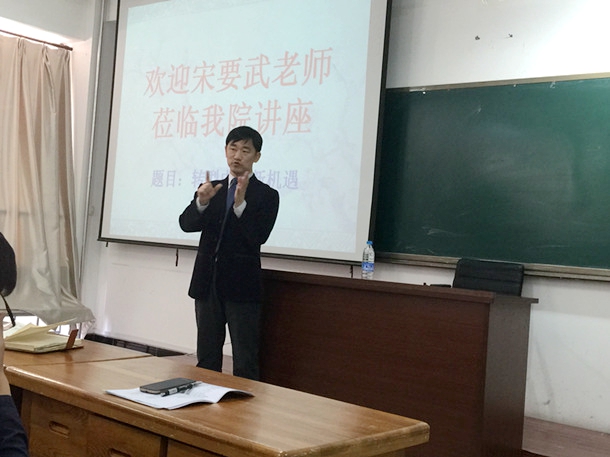 4月27日上午,应我校经济与管理学院邀请,黑龙江科技大学管理学宋要武博士在中主(11教)405教室做了题为《转型中的新机遇》的专题讲座。我校经济与管理学院院长王维、副院长王成与全院教师和研究生聆听了讲座。