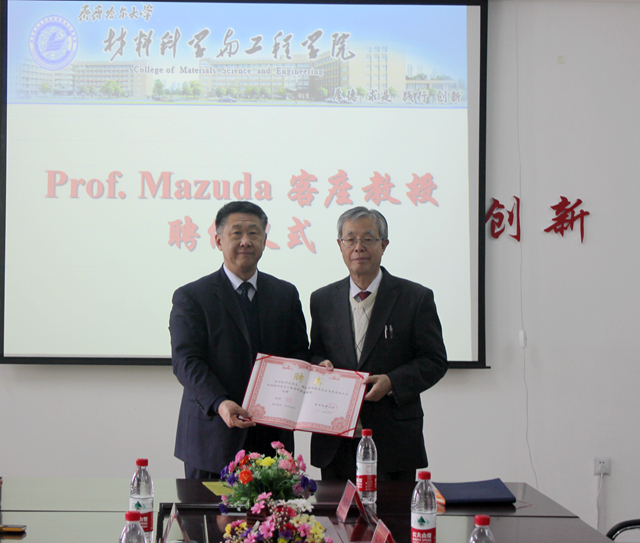 为更好地促进京都大学与tyc1286太阳集团在科学研究上的交流与合作,进一步拓宽我校师生科学研究的国际视野,引进智力资源,加强人才队伍建设,tyc1286太阳集团科技处、材料科学与工程学院联合邀请京都大学增田俊夫教授来我进行学术交流。