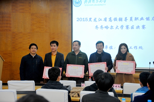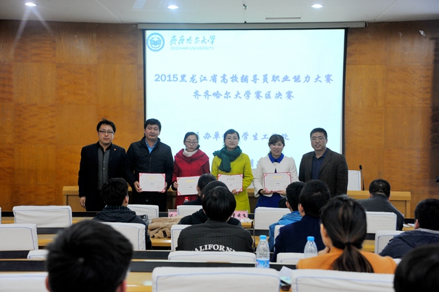 经过激烈角逐,最终经济与管理学院马小华同志获得个人一等奖,理学院孙磊、教育与传媒学院胡锐、哲学与法学学院赵海鹏等3位同志获得个人二等奖,化学与化学工程学院王欢、材料科学与工程学院马志红、经济与管理学院孙瑜、机电工程学院李明珠等4位同志获得个人三等奖。经济与管理学院、材料科学与工程学院、哲学与法学学院、化学与化学工程学院获得了本次大赛的集体优秀组织奖。与会领导与评委为获奖集体和个人颁发了荣誉证书。学校将选派获得个人一等奖的马小华同志代表我校参加2015年黑龙江省高校辅导员职业能力大赛。