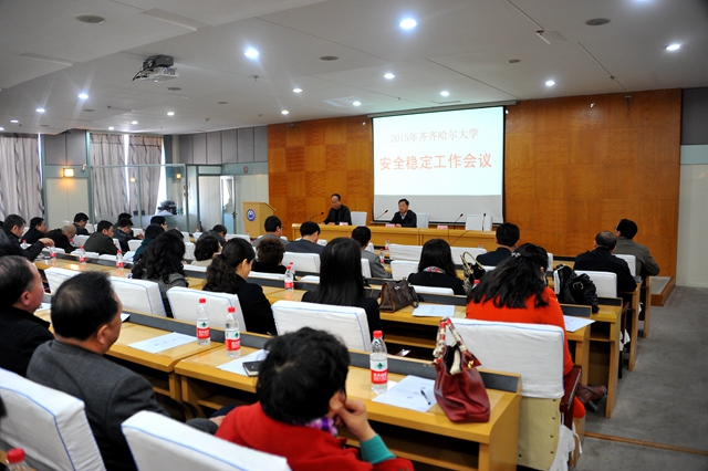 为贯彻落实国家、省、市各级有关安全稳定工作会议精神,切实抓好我校今年的安全稳定工作,4月16日上午9时,学校在西区主楼学术报告厅召开安全稳定工作会议,集体学习上级有关会议及文件精神,总结回顾我校过去一年安全稳定工作所取得的成绩和经验,部署今年我校安全稳定工作任务。校党委副书记盖元臣出席会议。校保卫处处长吴刚,校武装部政委兼保卫处(部)副处(部)长付建成以及学校各单位、各部门党政负责人参加会议。