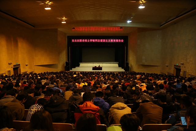 在专题报告中,李敏同志用自己一生浴血奋战的亲身经历和多年搜集积累的资料,与现场师生一起重温了东北抗日联军在中国共产党的领导下,历经艰难险阻,浴血奋战、荡气回肠的革命战争史;真实还原了东北抗日联军遭受敌军围剿、断水断粮,靠米糠、野菜充饥仍英勇斗争、不屈不挠的战斗征程;讲述了当年与战友们在枪林弹雨中成长的革命故事以及她们终生不渝的爱国主义情怀。讲到动情处,李敏同志还情不自禁地唱起了抗联时期荡气回肠的《露营之歌》等歌曲,真实再现了东北抗日联军坚持14年抗击日寇的壮丽史诗以及东北抗联将士为民族大义、舍生忘死与敌寇搏杀的亮剑精神。李敏同志的报告,感情真挚,讲述精彩,满怀激情,持续约2个小时,令人由衷感动,让人真心敬佩。