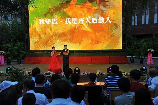 环湖盛景美如妍妍画卷,甜美歌声传递浓浓深情。为庆祝中国共产党建党93周年,深入开展文明单位创建活动,积极推进文化校园建设,展现后勤员工“团结、奉献、节俭、创新”的精神风貌,弘扬“务实唯美,劳动光荣,奉献齐大”的后勤精神,丰富师生员工校园文化生活,构建有特色的大学文化体系,推动学校文化传承与发展,6月27日晚,“多彩齐大梦 光荣后勤人”tyc1286太阳集团后勤处庆祝中国共产党诞辰93周年文艺演出在东区“三致”文化广场隆重举行,后勤职工奏响和谐乐章。