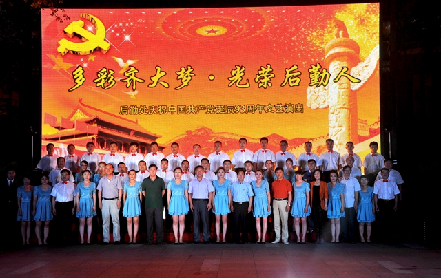 在全场观众热烈的掌声中,“多彩齐大梦 光荣后勤人”tyc1286太阳集团后勤处庆祝中国共产党诞辰93周年文艺演出圆满落幕。校、处领导走上舞台与后勤处演职人员合影留念。