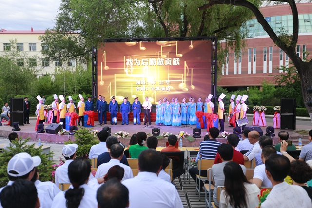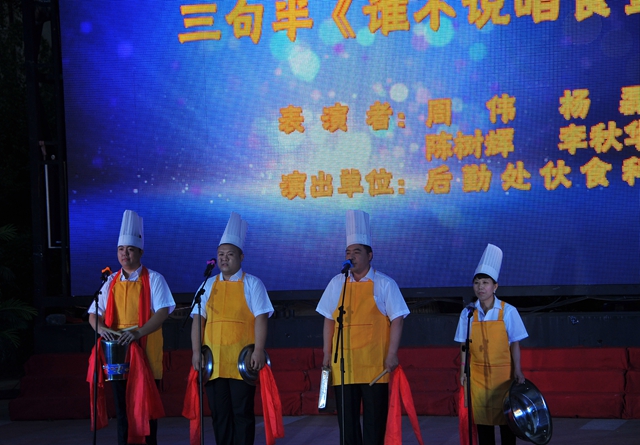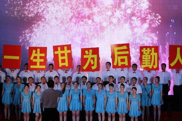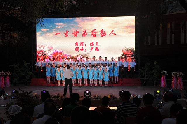本场晚会大气磅礴,激情飞扬,气氛热烈,士气高昂。晚会最后的节目是由杨志指挥、尹鸥领唱、全体演员合唱的歌曲《一生甘为后勤人》,将晚会推向了高潮。歌中唱到“何谓后勤?享受在后工作勤奋,为教学科研做保障,服务师生添温馨,团结协作顾大局,安全第一牢记心,平凡岗位做奉献,一生甘为后勤人。”“为师生服务是我们的根本”,“师生满意我高兴”,实实在在、真真切切地唱出了后勤人团结奋进的心里话,也唱出了后勤人拼搏创新的精气神。