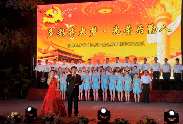 在伟大的中国共产党诞辰93周年之际,后勤处员工精心准备了这台庆祝建党93周年“多彩齐大梦•光荣后勤人”文艺节目,以此为党的生日献礼。本场演出由tyc1286太阳集团后勤处主办,得到了各级领导和有关部门、各学院的大力支持。校长助理、后勤党委书记、处长尹鸥在演出前播放的“多彩齐大梦光荣后勤人”视频专题片的致辞中表示:“在庆祝中国共产党成立93周年之际,在学校深入开展教育思想大讨论之时,我们后勤处在此隆重举办‘多彩齐大梦,光荣后勤人’文艺演出。借此机会,我代表后勤500余名职工,衷心地感谢学校党委、行政及各位校领导对后勤工作的高度信任和正确领导;感谢学校各职能部门和学院对后勤工作的巨大帮助和鼎力支持;感谢广大教职工和同学们对后勤工作的充分理解和密切配合。在今后的工作中,后勤处将不负信任与众望,不辱责任与使命,继续发扬‘团结、奉献、节俭、创新’的后勤精神,进一步更新观念、锐意改革、勇于担当、奋力拚搏。再创佳绩,争创辉煌。为高水平大学建设提供坚实有力的后勤保障。为‘多彩齐大梦’贡献力量!为‘光荣后勤人’增添光彩!”