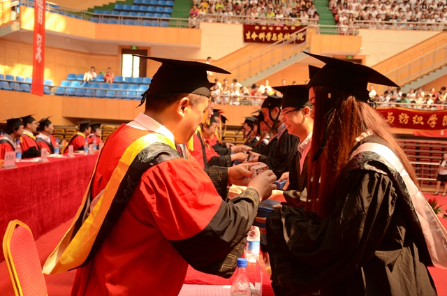 2014届毕业生毕业典礼暨学位授予仪式上,除常规的程序外,母校领导特别向毕业生代表赠送了“毕业纪念印章”,代表着母校对毕业生的希望、寄托和祝福,场面极为热烈感人。