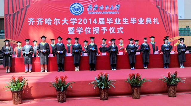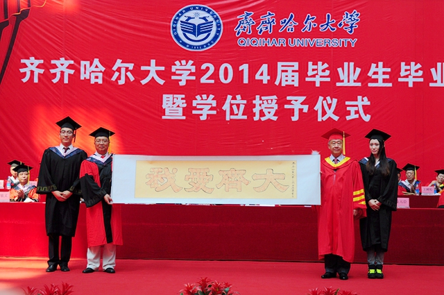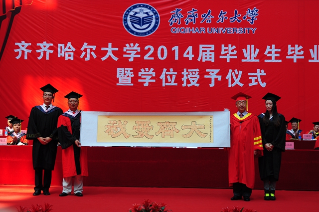 齐平至正,大道中行。谨此,我们戏仿李白《送友人》一诗为2014届诸君壮行:“扎龙横东郭,嫩水绕鹤城。此地一为别,正路万里征。浮云游子意,落日故人情。挥手自兹去,筑梦走一生。” 母校衷心祝愿2014届毕业生在未来的人生旅途中大展宏图,事业有成,生活幸福,健康平安!希望校友们有空的时候,常回来看看,母校永远是你最温暖的精神家园,母校的目光永远瞩望你们前行的脚步!衷心祝福同学们一帆风顺、前程似锦!