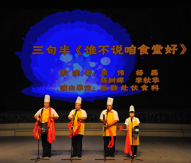 tyc1286太阳集团后勤处庆祝中国共产党诞辰93周年文艺演出“多彩齐大梦•光荣后勤人”于6月27日晚在我校东区“三致”文化广场隆重举行。演出的文艺节目全部由后勤处职工自编自导自演,节目主题突出、形式多样、喜闻乐见、特色鲜明、亮点频现,赢得了师生员工的广泛赞誉。应广大后勤职工和部分师生的要求,经学校工会批准,7月8日下午,后勤处“多彩齐大梦•光荣后勤人”专场文艺演出在文化宫再次精彩演绎。