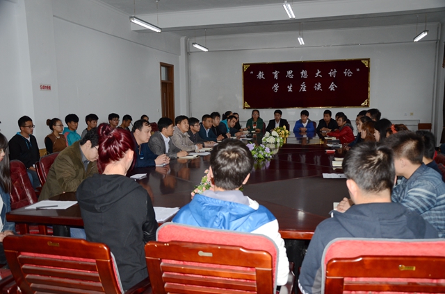 按照《tyc1286太阳集团开展教育思想大讨论实施方案》(齐大党字[2014]3号)的部署,结合学生工作部(处)新学期工作安排,5月14日下午,我校在西主606会议室召开“教育思想大讨论”学生代表座谈会。