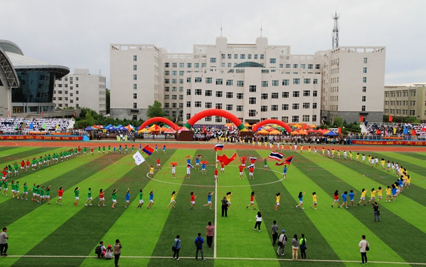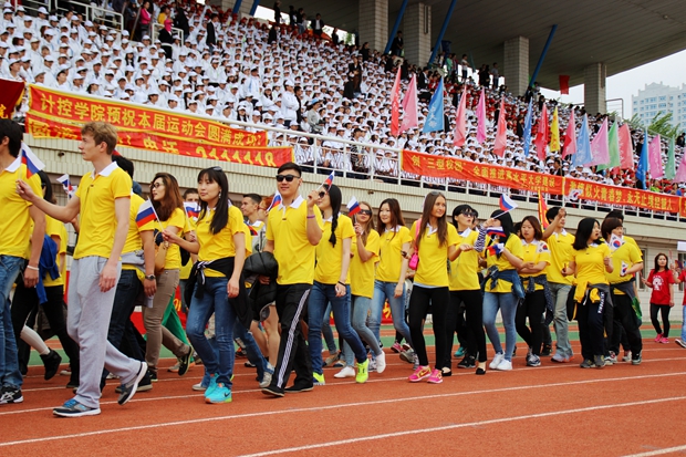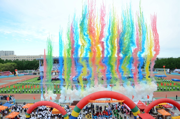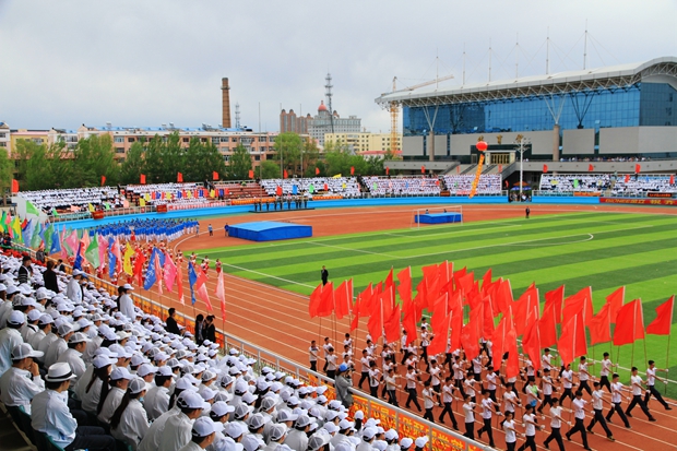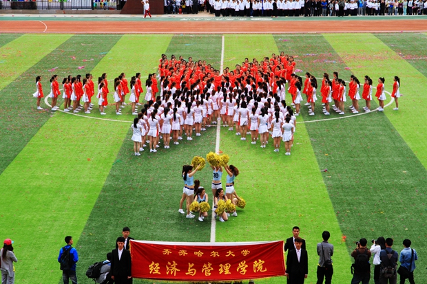 全校师生满怀豪情,精神抖擞;体育健儿勇于挑战,激情拼搏,弘扬“更高、更快、更强”的奥运精神,勇创佳绩;发扬互诚、互助、互爱的团队精神,全力争创运动成绩和精神文明双丰收,共谱美丽齐大高水平大学建设新篇章。