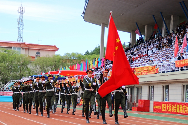 开幕式上举行了隆重的升国旗、奏国歌,升校旗、会旗,奏校歌仪式。全校领导师生面向国旗庄严行礼。