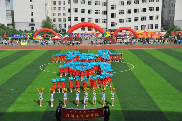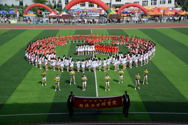 大会闭幕式前,经济与管理学院学生再次为大会表演了精彩的大型团体操。
