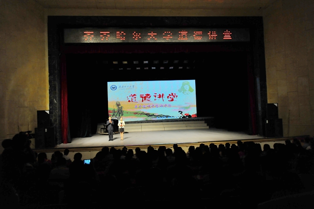上善若水,厚德载物。大学生道德讲堂作为一个崇德扬善的平台,每一个道德典型人物的事迹都能带给我们心灵的感动。他们大多是生活在我们身边的平凡人,但他们却在不平凡的岗位上做出了不平凡的事迹、树立了不平凡的形象,以实际行动具体体现了社会主义核心价值观。“养正毓德 精存自生”是我们的校训,倡导以德为先、崇德向善,希望同学们成通过道德讲堂,洗涤心灵,感悟道德,健全人格,践履道德,成长为社会主义道德的传播者、践行者和受益者,为实现伟大的中国梦贡献自己的智慧和力量。