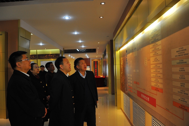 孙喆市长一行在校领导陪同下,深入到校史馆、西区校园、中区图书馆、东区校园、中区校园等地实地考察。校地领导一行边考察边交流。孙喆市长详细询问了学校的历史沿革、发展概况、校园建设、办学规模、优势学科和专业、办学特色等内容,校领导分别做了说明。