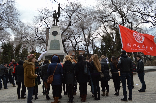 参加祭扫活动的领导老师和留学生们庄重地向烈士墓敬献了花圈和鲜花,祭扫活动圆满结束。