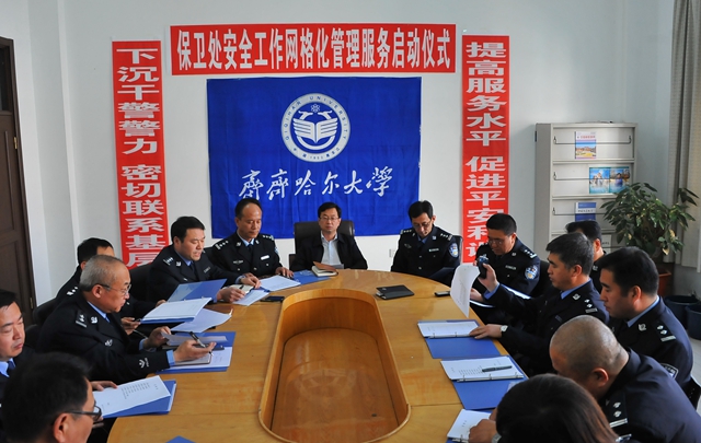 他强调,保卫部门要紧密结合学校教育思想大讨论的实际,扎扎实实地实践安全工作网格化管理服务,使网格化服务各要素之间密切协同,充分发挥网格服务的整体功能,切实把为师生保驾护航的服务理念落到实处;全体干警要树立大安全观思想,强化大局意识和服务意识,努力构建具有齐大特色的网格化安保体系;要以此次网格化管理服务启动仪式为新起点,不断提高保卫干警的整体素质,努力构建起一支适应高校安全保卫新形势需要的高素质保卫干警队伍。