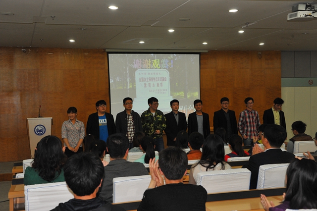 学模范。参加道德讲堂的师生共同观看了新闻纪录片《焦裕禄》,焦裕禄艰苦奋斗、无私奉献的故事深深打动了在座的同学们。随后,戏文121班学生表演了以我校优秀校友、原齐齐哈市副市长王树清为原型创作的话剧《树情》,将活动推向了高潮。