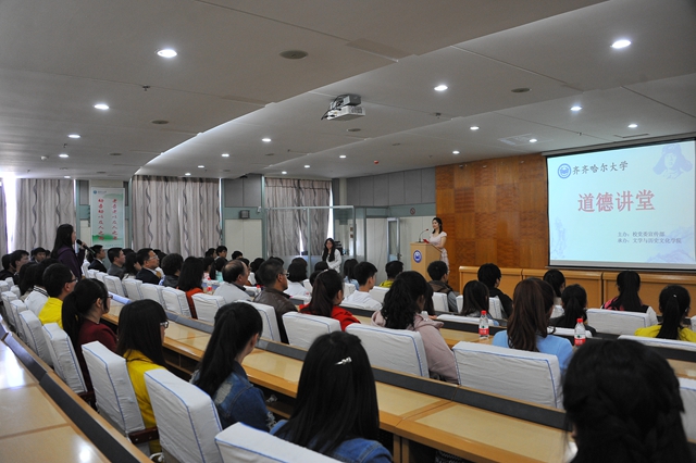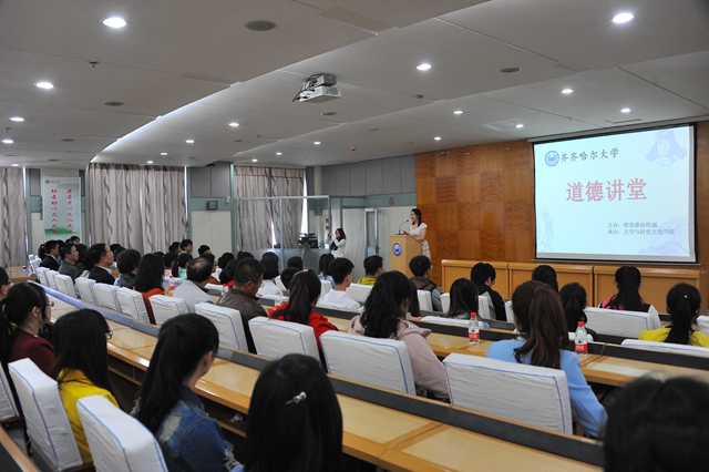 5月7日下午,我校在西区主楼学术报告厅举办了题为“知礼守信 厚德端行”的大学生道德讲堂活动。市文明办副主任赫萍出席活动。我校党委宣传部部长王晓梅,党委宣传部副部长孟宪国、何强,文学与历史文化学院党委书记张振民、副院长肖国栋和党委副书记、副院长邓树强,音乐与舞蹈学院党委副书记、副院长任华等部(学院)领导、师生代表200多人参加了此次活动。本次活动由校党委宣传部主办,文学与历史文化学院承办。《齐齐哈尔日报》、齐齐哈尔新闻网等媒体记者对道德讲堂活动进行了热忱采访报道,扩大了活动的辐射面。