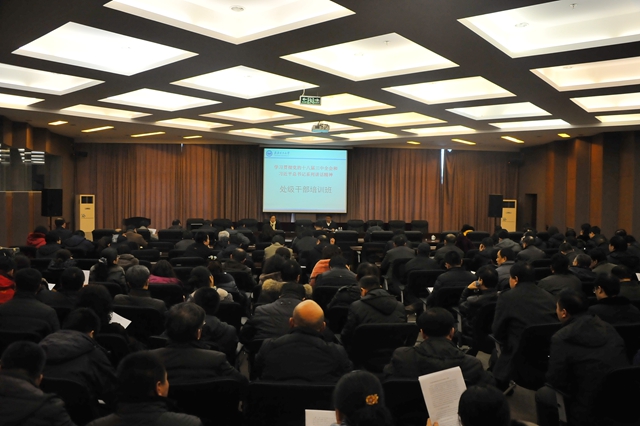 2014年2月27-28日,为深入学习贯彻落实党的十八届三中全会精神和习近平总书记系列讲话精神,提高中层班子的凝聚力和战斗力,加强党性修养,增强领导干部的政治意识、大局意识、责任意识,不断提高政治素质和业务能力,带头转变作风,勤奋工作,勇于担当,推进有特色高水平教学研究型综合大学建设,学校党委在德润大厦四楼会议室举办了处级干部培训班。
