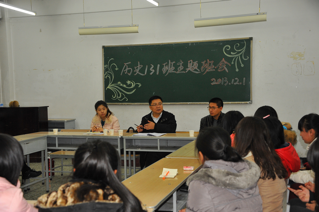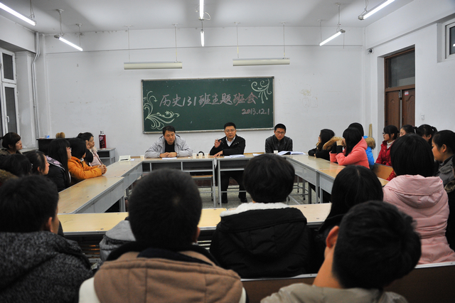 机关领导干部深入学院做兼职班主任制度,是我校深入贯彻落实党的群众路线的一项具体的实践载体。校党委书记李海红带头执行、落实该项制度。12月1日18:30,李海红深入到文学与历史文化学院215室,参加他在该学院担任兼职班主任的历史131班的主题班会,与学生围坐在一起,畅聊学习、生活经历和人生感悟,座谈大学生活感受和未来的人生设想。文学与历史文化学院党委书记张振民,副院长肖国栋,院党委副书记、副院长邓树强,高教研究与评估中心副主任耿春明,文学与历史文化学院2013级辅导员柳欣瑞等参加了此次主题班会。班会由历史专业131班班主任于宁宁老师主持。