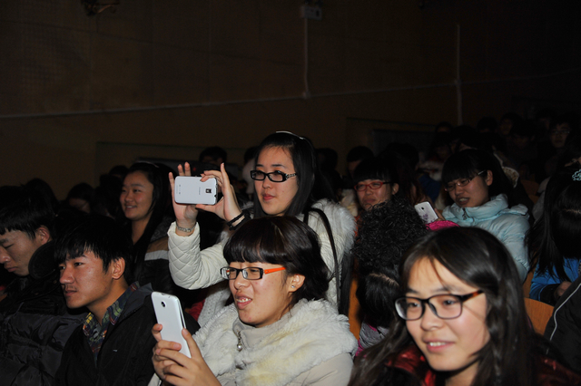 在我校进行的专场演出中,既有展现“说、学、逗、唱”的传统相声,也有风趣诙谐的新生代相声,内容贴近社会生活,让同学们从“以小见大”中感悟真善美。整场演出,编排精巧,台上台下互动频繁,现场高潮迭起,掌声与喝彩声阵阵。在演出过程中,省曲艺团的演员们还穿插为同学们普及了“传统相声”、“曲艺艺术”的相关知识。许多同学在现场纷纷拿出手机拍下精彩的瞬间,将高雅艺术与火爆场景定格、珍存起来。