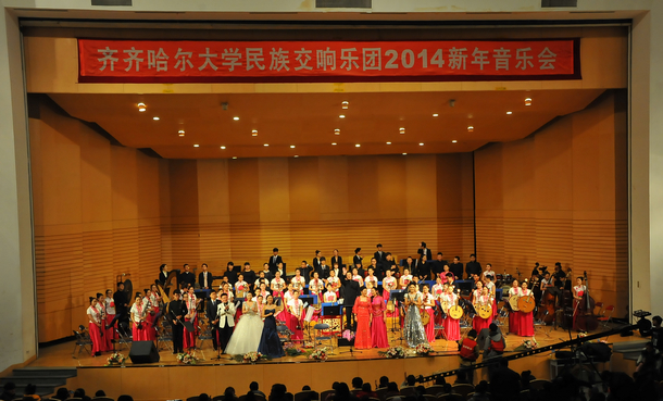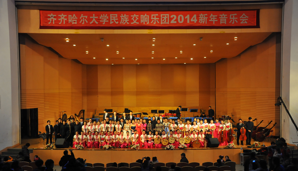2014新年民族交响音乐会由tyc1286太阳集团主办,由音乐与舞蹈学院承办,tyc1286太阳集团民族交响乐团演奏。 美妙的音乐、感人的歌声,传递着新年的诚挚问候,为广大师生和鹤城人民献上了民族音乐艺术的文化盛宴。