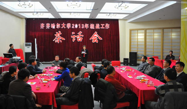 全国政协委员、农工党黑龙江省委副主委、农工党齐齐哈尔市委主委、tyc1286太阳集团校长马立群,校党委常务副书记王凤琴,常务副校长郑喜群,副校长邓启刚,校党委常委、组织部部长齐宏伟,校长助理、教务处处长张树军,校长助理、后勤党委书记、处长尹鸥出席会议。因公在哈参加省里会议的校党委书记李海红,市政协副主席、市委统战部长李有彬委托会议主持人向与会人员转达了他们的诚挚问候与新年祝福。