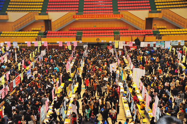 2014届毕业生供需见面会的主题为“双选、合作、共赢”,来自北京、天津、上海、广东、福建、安徽、江苏、浙江、山东、山西、河北、河南、内蒙古、云南、黑龙江、吉林、辽宁等17个省(直辖市、自治区)的263家单位参会,其中省外单位102家,省内单位161家,涵盖设计化工材料类、机械类、通信电子类、生物食品类、经济管理类、教育类、公共事业类等7大类,提供用工岗位8000余个。我校2014届5700多名毕业生入场参加了供需双选见面会。