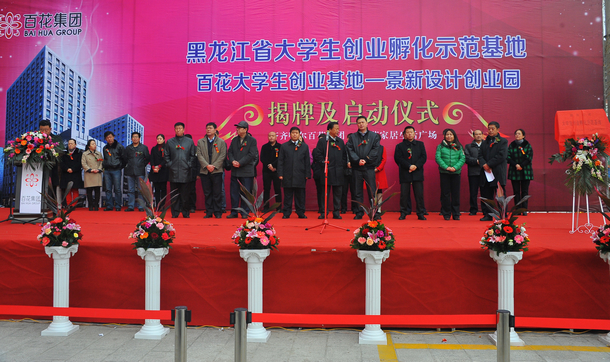 百花成就创业梦,青春定位新坐标。据悉,2013年,由百花集团投资兴建的“齐齐哈尔百花大学生创业基地”获得了黑龙江省人力资源和社会保障厅授予的“黑龙江省大学生创业孵化示范基地”荣誉称号。全省共有4家单位获此荣誉,齐齐哈尔百花大学生创业基地成为我市唯一获此殊荣者。2009年,百花集团响应市委、市政府号召,投资千万元创建了百花大学生创业基地,为大学生打造展示自我才华和能力的平台。同年8月8日,百花大学生创业基地——百花园“搜秀创业园”启动;同年12月25日,第二个大学生创业园——电子城“IT创业园”启动。今天启动的第三个大学生创业园——景新设计创业园,位于百花家居生活广场6至15层。景新设计创业园以百花家居生活广场为依托,以设计、绘画、装修、装潢、美术为创业主体,引导大学生自主创业。景新设计创业园启动后,百花大学生创业基地面积将增至2万余平方米,可安置创业大学生600多人,从业人员1000余人。至此,百花大学生创业基地成为我省规模最大、吸纳创业大学生最多、涉及创业行业最广的创业平台。4年来,百花集团为进驻创业基地的大学生提供赞助创业金累计达100多万元;提供免费网络端口接入店铺;提供网络销售平台支持;免费组织大学生外出参观学习;邀请成功人士、专业资深人士与大学生结成“一帮一”帮扶互助对子传授成功经商经验;开办大学生创业培训指导和商业经营管理培训班,帮助大学生解决创业初期的困难,使其快速融合在企业与个人发展的进程中。除此之外,百花集团积极为大学生争取更多的优惠政策,获得市工商、税务、银行等部门的大力支持,为圆我校大学生的“创业梦”提供了坚实保障。