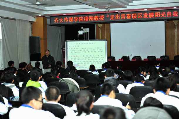 签约授牌仪式结束后,我校教育与传媒学院穆刚副教授为全体与会学生作了《走出青春误区,发展阳光自我》的专题讲座。