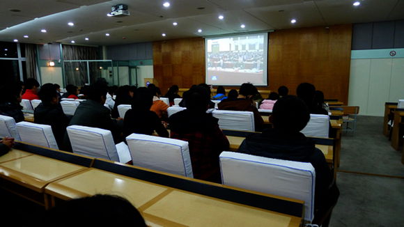 19:00,我校大学生中国特色社会主义理论研究会的学生在学术报告厅集体收听收看中央电视台《新闻联播》播发的《中国共产党第十八届中央委员会第三次全体会议公报》,齐齐哈尔电视台记者进行了采访报道。