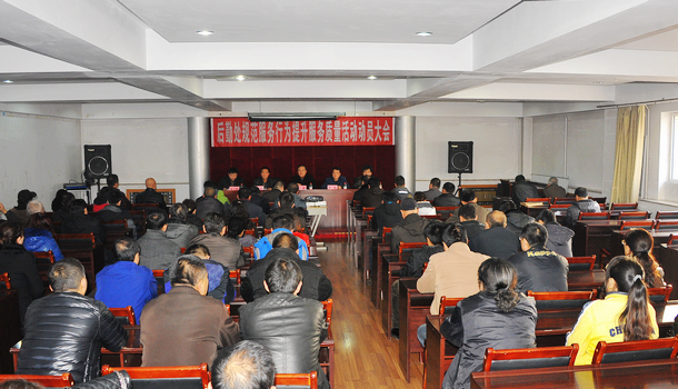 在会上,副处长韩士华宣读了《后勤处规范服务行为 提升服务质量活动实施方案》。副处长杨庆忠宣布了“后勤处规范服务行为提升服务质量活动领导小组成员名单”、“后勤处规范服务行为提升服务质量活动内容及时间安排”。后勤处全体党员、科级以上干部以及班组长参加了会议。会议由后勤处副处长杜立群主持。