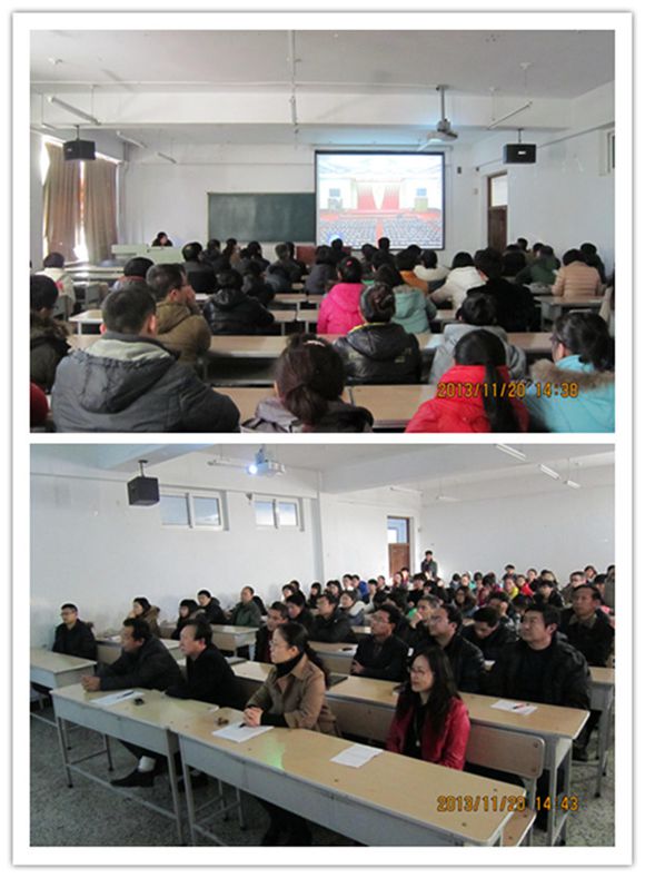 首先,全体与会人员集体观看了《中国共产党第十八届中央委员会第三次全体会议公报》和习近平总书记《关于< 中共中央关于全面深化改革若干重大问题的决定>的说明》的视频片,对在我国改革开放新的重要关头召开的党的十八届三中全会的意义有了深入的了解,特别是习近平总书记的说明,对我们深刻领会、准确把握中央《决定》精神具有重要意义。随后,杨淳书记进行了专题辅导,主要是针对《决定》中涉及教育和民生的话题进行了形象通俗的讲解,师生们感受到了新一届党中央集体在重要的历史关头,再一次为中华民族描绘了宏伟战略目标,中华民族复兴的百年梦想必将成为现实。杨淳书记最后强调:党中央的战略决策和我们师生的生活和事业息息相关,我们应该用优异工作成绩贯彻落实十八届三中全会的精神,早日建成高水平教学研究型学院。