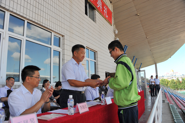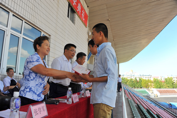 出席典礼的校领导李海红、马立群、王凤琴 盖元臣为获奖新生代表颁发了证书。