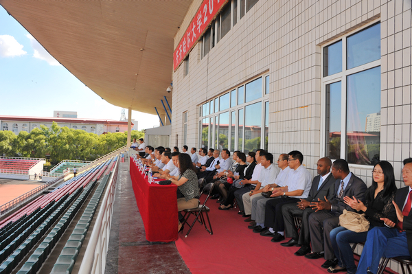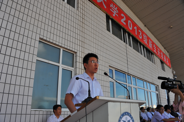 学校党委常委、组织部长齐宏伟,校长助理张树军、尹鸥、各学院院长及外国教师代表史蒂文和约翰参加开学典礼并在主席台就座。学校各院(系)、各相关职能部门负责人与2013级全体新生一同参加了开学典礼。