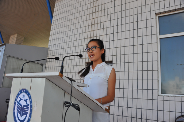 2013级新生代表、食品科学与工程专业刘守文同学在典礼上发言。她说:“作为2013级新生,我们在感受新鲜的同时,也很快融入了这个温暖而富有亲和力的大家庭中。从踏进大学的那一刻起,一路的疲倦与迷茫都被抛之脑后,所有离家的顾虑全部一扫而光,迎接我们的是一个如此美丽的校园。她用她那广博的胸怀给我们以拥抱。领导老师们的亲切关怀,学长学姐们的热情帮助,都让我们感到温暖和幸福。”我们要“练就担起责任的肩膀”,“牢记师友的热切期盼,秉承‘养正毓德精存自生’的校训,扬起理想风帆,珍惜美好时光,播种新希望,放飞新梦想,踏上新征程,创造新业绩,在tyc1286太阳集团的这片热土上,致知,致用,致远,共同铸造新的辉煌,在为实现‘国家富强,民族复兴,人民幸福’的“中国梦”的道路上,同心,同德,同行,做出一名当代大学生应有的贡献。”