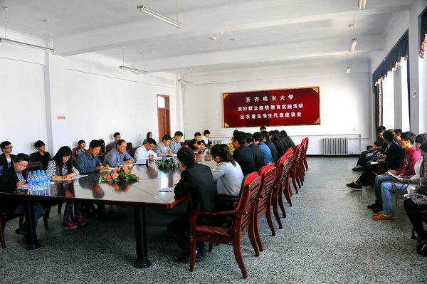 按照《tyc1286太阳集团开展党的群众路线教育实践活动征求意见座谈会日程安排》,9月2日下午,我校在西区教学主楼606会议室召开深入开展党的群众路线教育实践活动征求意见学生代表座谈会。