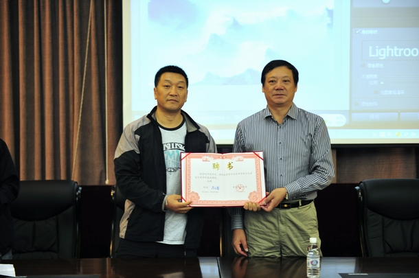 校党委书记李海红出席在德润大厦会议厅举行的讲座活动,副校长邓启刚教授代表学校向娄勇智副主席颁发客座教授聘任证书。客座教授聘任仪式暨摄影讲座由我校美术与艺术设计学院院长马振庆教授主持。