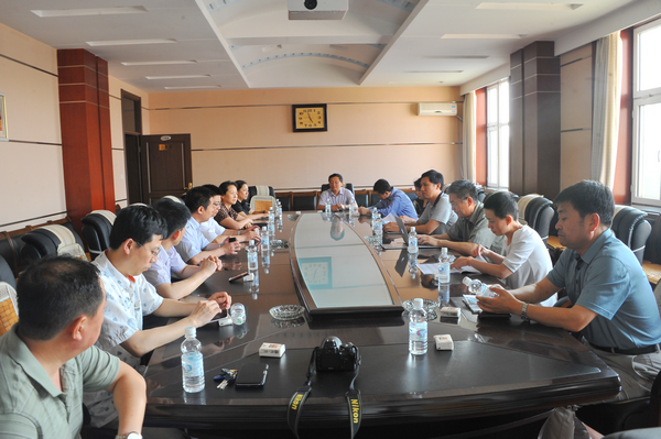 参观考察结束后,我校领导、处办负责人、教育与传媒学院负责人、广播电视新闻学专业带头人、现代教育技术学专业带头人等在中区办公楼504会议室与严军琦、袁文栋一行进行了座谈和交流。