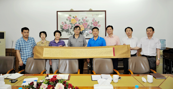 在交流座谈中,马立群校长向中国纺织科学研究院领导概要介绍了我校的校情、办学特色、应用型人才培养模式以及我校材料科学与工程学科与中国石油大庆石化分公司腈纶厂“酸性可染腈纶的研究”产学研合作概况。